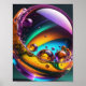 Ein lebendiger Farbwirbel schafft ein faszinierendes, abstraktes sphärisches Design mit mehreren reflektierenden Blasen. Die lila, grünen und gelben Farbtöne verleihen ihm ein glänzendes, ansonsten weltliches Gefühl.