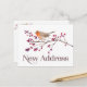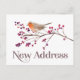Wunderschöner Vogel auf dem Baumzweig mit Beeren. Kunstform im Aquarellstil mit moderner Typografie. Die perfekte Änderung der Adresse oder neue Adresskarte, um sie an Familie, Freunde und Geschäftskunden zu senden.