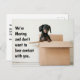 Umzug der Adresskarte, mit einem niedlichen Foto eines Schwarz-Braun-Dackel-Hundes in einer Kartonbox. Personalisieren Sie den fett gedruckten Text, um zu lesen, was Sie gewollt haben.