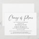 Moderne und minimale schwarz-weiße Hochzeitswechsel von Plänen, Aufschub oder Stornierung Ankündigung. "Änderung der Pläne" ist in einem stilvollen Skript geschrieben und Sie können leicht personalisieren, ob die Hochzeit abgesagt wurde, das Datum verschoben wurde oder andere Details geändert wurden.