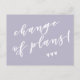 NewParkLane - Postcard, mit 'Planänderung' in eleganter weißer Pinselschrift / Kalligraphie Typografie und drei niedlichen kleinen Herzens, vor Lavendelhintergrund. Eine Mehrzweckkarte, um die Menschen lassen, wissen, dass es eine Verschiebung eines Party-Datums aufgrund der Corona Pandemie oder aus anderen Gründen. Einfach in Zazzle anpassen, indem Sie Ihren eigenen Text hinzufügen oder die Hintergrundfarbe für ein personalisiertes Design ändern. Karo diese Kollektion für passende Artikel aus! Haben Sie spezielle persönliche Designwünsche? Kontaktieren Sie mich bitte!