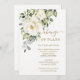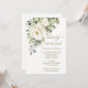 Elegantes Kartendesign mit weißen, cremefarbenen Blume und grünen Blätter auf weißem Hintergrund. Auf der Rückseite weiße Blume Bouquet. Verwenden Sie das Tool Personalisieren, um Ihre Informationen hinzuzufügen. Für passende Artikel besuchen Sie bitte die Bloom-Sammlung meiner White Blume