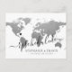 Silver World Map Postcard für die Änderung von Plänen einer Hochzeit in Urlaubsort, die neu geplant oder verschoben wurde, mit vollständig bearbeitbarem Text, sodass Sie so viel oder so wenig erklären können, wie Sie wollen, und eine Website für Karo für Updates und Änderungen. — Klicken Sie auf KUNDENFÖRDERN, um das Herz zu bewegen, Hintergrund- und Textfarbe zu ändern, Schriftart zu ändern oder das Ganze neu zu ordnen und mithilfe unserer einzigartigen Imitate Goldfolienkarte ein eigenes Design zu erstellen. — Perfekt für tropische, Strand, Insel, Stadt, Berg und Abenteuer Hochzeit in Urlaubsort Orte auf der ganzen Welt. Karo in unserem Designer-Shop für die Koordination von Artikeln!