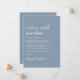 Minimal moderne staubblaue Hochzeitswechsel von Veranstaltungsort Ankündigung. "wedding update new place" ist in einem Mix aus einem zeitgenössischen weißen Skript und fett-trendigen weißen Typografie geschrieben (Sie können dies auf "neues Datum", "kleinere Hochzeit", etc). Personalisieren Sie Ihre Planungs-Nachricht, fügen Sie Ihre Namen in einem signaturähnlichen Skript hinzu und fügen Sie Ihre Hochzeitwebsite auf der Rückseite oder verlass leer.