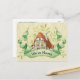 Eine charmante Vintage Hütte mit einem roten Ziegeldach sitzt auf antikem, cremefarbenem Pergamentpapier in einem Blumenstrauß mit grünen Ästen. Das Banner vor dem Haus sagt: "Wir sind umgezogen" und kündigt den Adresswechsel an. Die Rückseite der Postkarte kann leicht mit Ihrer neuen Adresse, Telefon/E-Mail und anderen Informationen personalisiert werden, die Sie für Ihre Freunde und Familie benötigen.