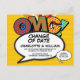 Personalisieren Sie mit Ihren Namen und Details, um die Änderung des Datums Ihrer besonderen Veranstaltung anzukündigen. Comic Buch Pop Kunst themed modern, Spaß Retro-Design, perfekt für Hochzeiten, Brautpartys, Babyduschen, Taufen, Verlobungen, Jubiläumsfeiern, Abschlüsse, Geburtstagsparty und andere besondere Veranstaltungen das ganze Jahr über! Ein cooles, trendiges und unterhaltsames Design, das den wackeligen Zap Pow in den Tag legt. Entwickelt von Thisisnotme©