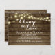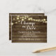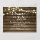 Ändern Sie das Datum rustikale Stallhochzeit Thema Postkarte mit dunklem Holz und Saitenleuchten. Bearbeiten Sie Text wie gewünscht.