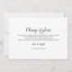 Diese lustige Schwarzweiß-Änderung der Datumskarte kann mit Ihren Aufschiebungsinformationen personalisiert werden. Die Rückseite hat zusätzliche Details. Ideal für Hochzeiten, Brautpartys, Babyduschen, Taufen, Verlobungsfeiern, Jubiläumsfeiern, Abschlüsse, Geburtstagsfeiern und andere besondere Veranstaltungen das ganze Jahr über! Entwickelt von Thisisnotme©