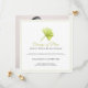 Eine einfache Änderung der geplanten Hochzeitskarte mit einem Aquarellmalblatt, schwarzem und grünem Text und auf einem Weiß mit einem Foto auf der Rückseite. Lass deinen Gästen, dass deine Hochzeit oder andere Veranstaltung wegen unvorhergesehener Umstände abgesagt oder verschoben wurde. Weitere passende Artikel sind verfügbar. Einfache tropische Wasserfarbenkunst und Design von Sarah Trett für www.mylittleeden.com