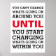 Motivierend Typografie-Zitat-Poster mit Text: "Du kannst nichts ändern, was um dich herum passiert. Bis du anfängst, zu ändern, was in dir vor sich geht. Der Text ist schwarz über hellgrauem Hintergrund. Das Wort "Bis" ist in roten, fett gedruckten Hauptstädte abgefasst. Sie können den Stil, die Größe und die Hintergrundfarbe des Schriftartes ändern, wenn Sie gewollt haben.