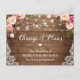 Vorlage zur Ankündigung von Ereignissen - Rustikale Holzblumen-Spitzen-Lichter Änderung der Pläne Postkarten. (1) Für weitere Anpassungen klicken Sie bitte auf den Link "Weiter anpassen" und verwenden Sie unser Designwerkzeug, um diese Vorlage zu ändern. (2) Wenn Sie Hilfe oder passende Artikel benötigen, kontaktieren Sie mich bitte.