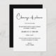 Moderne und minimale schwarz-weiße Hochzeitsstornierung oder Hochzeitsaufschub-Karte mit minimalistischem Script-Schriftart für "Planungswechsel".