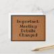 Diese Postkarte eignet sich hervorragend, um die Leute lassen, dass sich die Details des Treffens ändern. Sie werden den Wechsel der Details schätzen. Es ist eine nette Touch, um Ihr Geschäft reibungslos behalten.