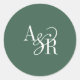 ANDREA Dark Green Modern Simple Wedding Monogram Runder Aufkleber