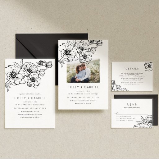 Anemone Bouquet Wedding Einladung