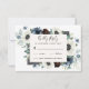 Anemone Dusty Blue Thistle Burgundy Floral Wedding RSVP Karte