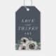 Wir bedanken uns für Ihre elegante Gastgeschenk Hochzeit in einer Farbpalette von rauchblauen, cremefarbenen Elfenbein und staubigen Salbeigrün im Trend. Das Design bietet "Liebe und Dank" und Ihre Initialen in einem eklektischen Mix aus kursiver, Block- und Skripttypografie, mit einer Gruppierung von Aquarellanemonen-Blume und Eukalyptuszweigen. Tags kehren zu solidem Licht schlüpfgrün für einfaches Schreiben.