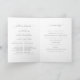 Ein wunderschönes gefaltetes Hochzeitsprogramm, das perfekt für eine Winterhochzeit geeignet ist, mit einem Blumenkranz aus Anemonen und Grünpflanzen in Aquarellen und einem hellgrauen Ampersand.