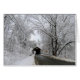 Der frische Schnee bedeckt die Äste rund um die Coombs Bridge in Winchester, New Hampshire.