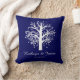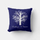 Hochzeits-Andenken-Kissen, Stammbaum; Weiß auf Marine, mit Silhouette des weißen Baums auf einem Marine-Blaukissen, fügt die Namen der Paare und Hochzeits-Datum an der Front des Kissens hinzu; Zurück vom Kissen sagt "den Anfang eines neuen Stammbaums" (oder redigieren Sie Text, da Sie möchten)