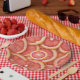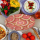 Anfänglich frisch gepicktes rosa Grapefruitmonogra Pappteller