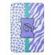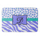 Dekorieren Sie Ihr Bad oder ein anderes Zimmer in Ihrem Haus mit diesem farbenfrohen Teppich mit Ihrem Monogramm. Sie werden diese raffinierte und stilvolle Kombination aus dem beliebten wilden afrikanischen Tier Zebrastreifen und Leopard oder Geparden Haut Design Liebe. Dieser trendige periwinkle Lavendel lila-weiße Zebra und Leopardenmuster ist in verschiedenen Farbkombinationen erhältlich. Ein periwinkle Lavendel Emblem auf einem türkisfarbenen aquamarinen Blau oder Aqua Stripe schafft einen Personalisierungsbereich für Ihr Monogramm oder Ihren Namen. Dies ist vollständig anpassbar und ist für viele koordinierende Produkte in diesem Geschäft erhältlich.