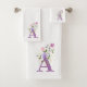 Das Design enthält Monogram plus Blume in einem Blumendesign. Ursprünglich ist der Buchstabe A. Persönliches Handtuch Set.