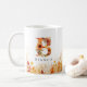Elegante Aquarellfarben-Blätter umrahmen den Boden dieser Tasse, während der Buchstabe B eine Collage aus festlichen Fallen rot-orangen und gelben Blätter ist, Personalisieren mit einem Namen, um es einzigartig zu machen.