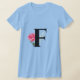 Anfangsbuchstabe F in Schwarz mit rosa Rose T-Shirt