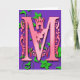 Der Buchstabe M auf einer elegant dekorativen Karte. Rosa auf violettem Hintergrund, mit Details aus grünem Blattwerk. Erhältlich auf Grußkarten, Notecards oder Postkarten. Umschläge mit Begrüßung oder Anmerkung (keine Umschläge mit Postkarten), innen leer. Mache von unserem Mengenrabatt Gebrauch.
