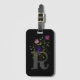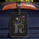Das Design enthält Monogram plus Blume in einem Blumendesign. Ursprünglich ist der Buchstabe R. Black Luggage Tag.