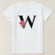 Anfangsbuchstabe W in Schwarz mit rosa Rose T-Shirt