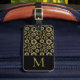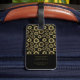 Das moderne und stilvolle Sonnenblumenpatter aus Gold und schwarzer Folie mit goldenem Monogramm wird auf Ihrem Gepäck phantastisch aussehen, wenn Sie unterwegs sind. Anfänglich vorne, persönliche Details auf der Rückseite. Im Trend!