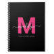 Personalisiertes elegantes, modernes Black and Hot Pink Script Name Initial Monogram Spiral Notebook. Dieses elegante und feminine Notizbuch fügt eine lebendige Touch hinzu, die auf einem schwarzen Hintergrund mit einem flachen, heißen Rosa-Erstling aufwartet. Ein fließender weißer Skriptname überlagert den ersten in anmutiger Kalligrafie, wobei der vollständige Vor- und Nachname unten in einem sauberen, modernen Schriftart für ein glänzendes, personalisiertes Finish gedruckt wird. Dieses vielseitige Notebook eignet sich hervorragend, um dem Büro Stil hinzuzufügen, es als Schulheft für die Mittelschule, die Oberschule oder die Uni zu verwenden oder mit Flair behalten. Es ist auch ein ideales Skizzenbuch. Es ist ein nachdenkliches Geschenk für Ferien, Geburtstage, Muttertag, Schulzeit oder jeden besondere Anlass. Dieses Notizbuch ist ideal für Lehrer, Schüler oder sogar eine Studentinnenverbindung. Es verbindet Eleganz mit Praxisnähe für alle, die eine raffinierte, persönliche Touch in ihren Alltagsessenziellen schätzen.
