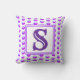 Dieses Monogramm-Kissen ist eine großartige Möglichkeit, Ihrem Zuhause einen farbenfrohen Akzent zu verleihen oder einen besonderen Sake für eine Hochzeit oder eine Hauswärmung zu schaffen. Ein lila Polka-Punktmuster erscheint vor einem weißen Hintergrund sowohl auf der Vorderseite als auch auf der Rückseite dieses Kissens. Der Buchstabe "S" ist in einem Quadrat enthalten und kann schnell und einfach personalisiert werden. Original Design - C. McGouldrick