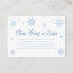 Mit dieser Personalisierten Blue Winter Brautparty Recipe Request Enclosure Card können Sie das Brautparty im Winter aufwerten. Diese Karte ist perfekt für eine gemütliche Feier und lädt die Gäste dazu ein, ihre Lieblingsrezepte zu teilen und Ihrem Brautparty eine warme Touch zu verleihen. Ideal für einen Schnee in der Liebe Brautparty Thema, schafft es einen unvergesslichen Sake für die Braut. Personalisieren Sie es, um Ihren Winter Wunderland Event zu entsprechen!