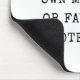 Mauspad mit der benutzerdefinierten Nachricht oder dem Zitat in einem Vintagen Schriftart im Schreibmaschinenstil auf weißem Hintergrund.