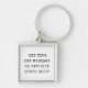 Schlüsselanhänger mit der benutzerdefinierten Nachricht oder dem Zitat in einem Vintagen Schriftart im Schreibmaschinenstil auf weißem Hintergrund.