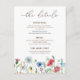 Aquarellfarben Elegante Wildblumen Hochzeitsdetails Eintrittskarte.
