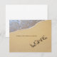 Beach-and-Liebe-Angebot Hochzeitsreise - schöne Strandszene mit Meer und Sand und das Wort LIEBE im Sand. Zitat liest, ein Moment, der uns für immer verändert hat. —Personalisieren Sie diese einzigartige Hochzeitseinladung mit Ihren Hochzeitsdetails auf der Rückseite.