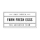 Stilvolle Farm Fresh Eggs Rubber Briefmarke mit fett formatierten Schriftart zwischen aufgeteilten Rechteck. Personalisieren Sie es, indem Sie den Platzhalter-Text durch Ihre Informationen ersetzen. Für weitere Optionen, wie zum Beispiel den Schriftart zu ändern, ist es die Größe, Abstand zwischen Buchstaben oder Zeilenabstand klicken Sie auf die Schaltfläche "Anpassen". *Bitte beachten Sie, dass das Zazzle-Wasserzeichen, das in der Zoomvorschau angezeigt wird, NICHT auf dem gedruckten Endprodukt erscheint. © Rosewood and Citrus