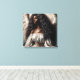 Die Leinwand ist ein schöner, dunkelhäutiger Frauenenengel mit großen Flügeln, der ein weißes Kleid mit Goldgürtel trägt. Sie hat dicke, lange, gewellte Haare und schaut zur Seite. Ein strahlendes Ölgemälde porträtiert Kunstwerk von Melanin Engel-Core von Dee Claire.