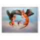 Zwei tabby Engel mit Falkenflügeln spielen mit einer Maus durch die Wolken jagen.