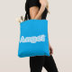 Tasche, die auf der einen Seite blau ist mit dem Wort "Engel", auf der anderen Seite mit dem Wort "Dämon" rot ist