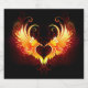 Engel Feuerherz mit flammenden Flügeln auf schwarzem Hintergrund.