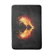 Engel Feuerherz mit flammenden Flügeln auf schwarzem Hintergrund.