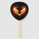 Engel Feuerherz mit flammenden Flügeln auf schwarzem Hintergrund.