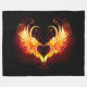 Engel Feuerherz mit flammenden Flügeln auf schwarzem Hintergrund.