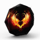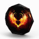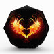 Engel Feuerherz mit flammenden Flügeln auf schwarzem Hintergrund.