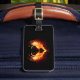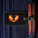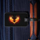 Engel Feuerherz mit flammenden Flügeln auf schwarzem Hintergrund.
